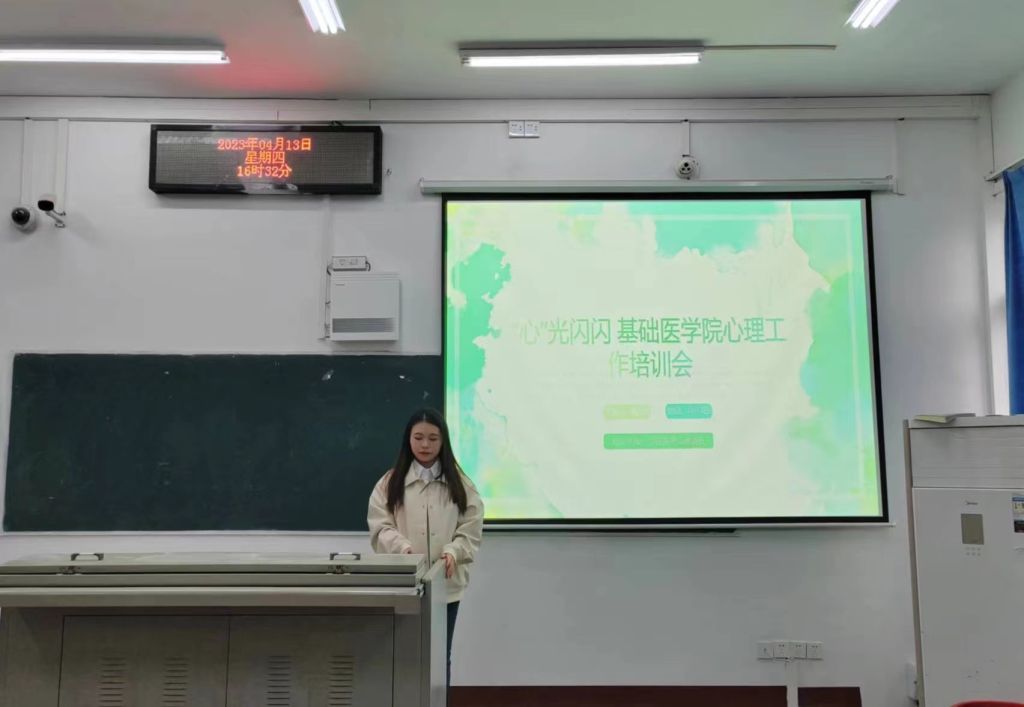 会议开始,莫苏萌同学从以下四个方面对心理委员展开培训:第一,强调心理委员的工作职责,罗列出的工作要点是每个心理委员应该了解并做到的;第二,认识心理健康,从心理健康的一般标准和易发生在老员工身上的心理问题进行论述,主要就易发生的焦虑情绪与焦虑症、抑郁情绪与抑郁症和潜在的心理问题进行详细的介绍;第三,学会心理调试,强调心理委员在班级里的处事风格和引导作用,意在让班集体处在一个和谐的氛围;第四,介绍公司的心理危机预警系统,一级是员工本人和一起生活的寝室长,二级为班级心理委员,三级为公司心理辅导站,四级为公司心理中心。最后,饶悦老师指出在公司学习生活中,同学之间需要相互理解、相互支持,心理委员要学会观察身边同学的心理变化情况,积极关注同学,给予支持和帮助。