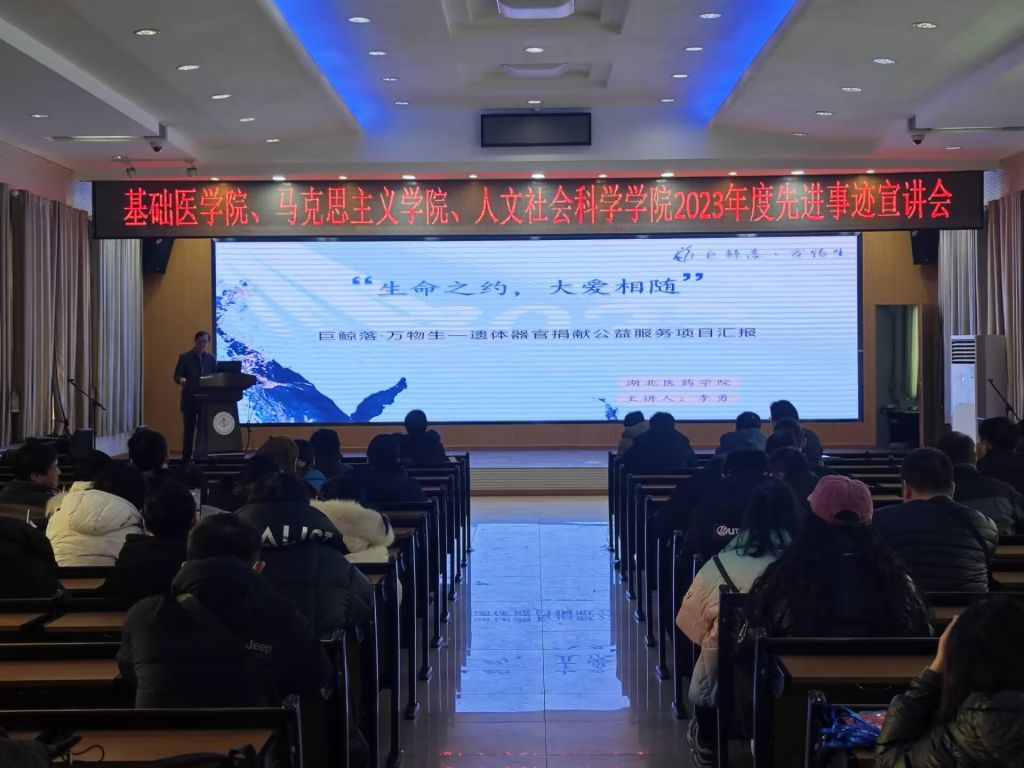 本次宣讲会邀请到2023年“荆楚楷模”、“十堰好人”、TapTap形态学实验室副主任、巨鲸落·万物生遗体器官捐献志愿服务队队长李勇老师和2023年湖北省一流本科课程《病理生理学》负责人张亚辉老师进行分享交流。