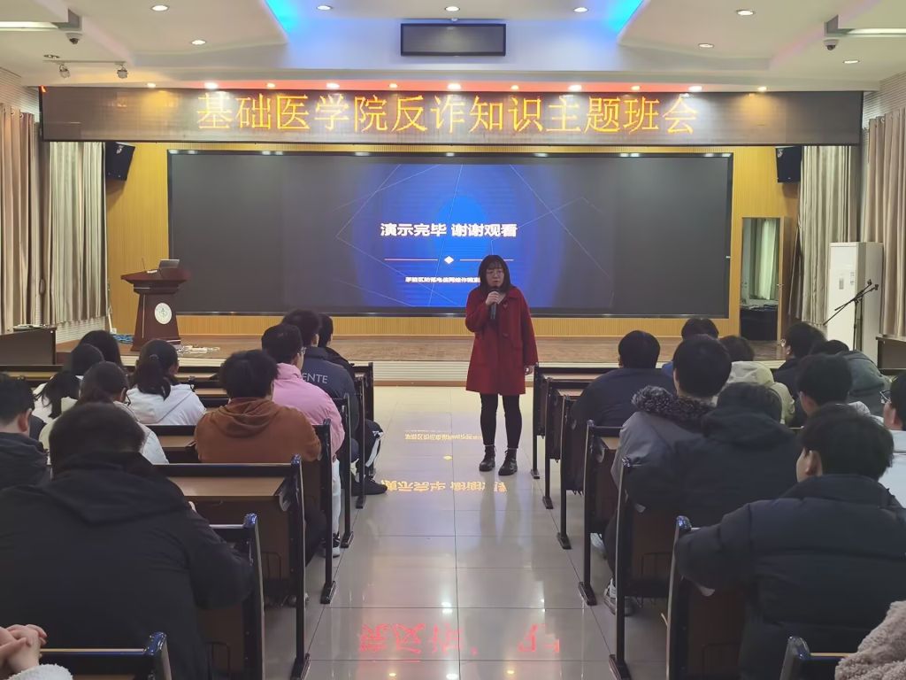 活动中,饶悦老师结合近期高发的“刷单返利”“网络退货”“虚假贷款”等典型诈骗案例,深入解析诈骗分子的作案手法和话术陷阱。同时,呼吁大家增强法治观念,共同抵制诈骗行为。共同营造一个安全、和谐的校园环境。(审稿 李潇)