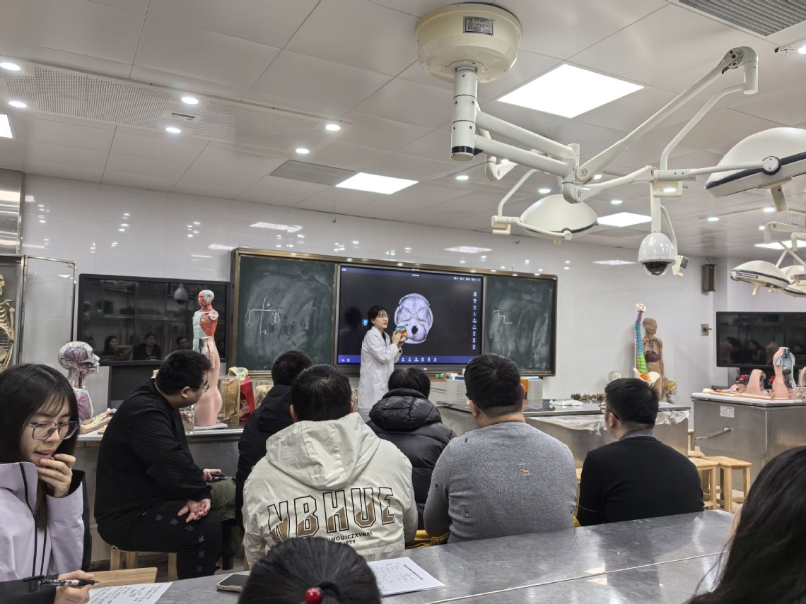 青年博士教师樊婷婷、刘志伟依次就《系统解剖学》中轴骨(颅骨、胸骨)部分实习课内容进行了20分钟的试预讲。两位教师准备充分,教学内容设计合理,注重理论联系实际,在讲解中轴骨位置与形态结构的同时,融入了临床联系与思政元素,展现了扎实的专业基础和良好的教学风貌。试预讲结束后,与会领导与教研室资深教师对两位青年教师的表现进行了细致点评。