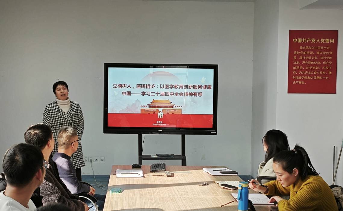 本网讯(通讯员罗旭东)1月15日,TapTap第五党支部在科教楼818党员活动室举行主题党日活动。“湖北省师德先进个人”“湖医药学者”郗雪艳教授以《立德树人,医研相济:以医学教育创新服务健康中国——学习党的二十届四中全会精神有感》为题进行宣讲,支部全体教职工参加学习。